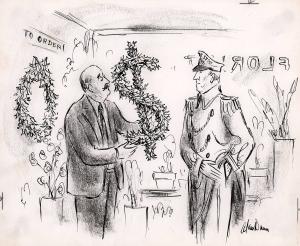 No Caption (Doorman buying $- shaped wreath)