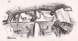 No caption (mounted policeman looking into empty car)