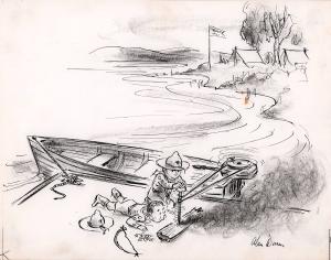 No caption (boy scouts using boat motor to start fire with out matches )
