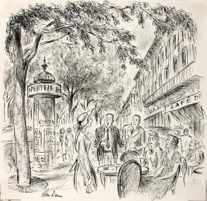 "I'd like you to meet Miss Tucker, who's over here on a Guggenheim, Miss Coley, who's here on a Fullbright, and Mr. Stewart, who's on his own."