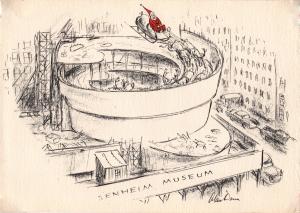 No caption (Santa Claus and sleigh landing on Guggenheim Museum)