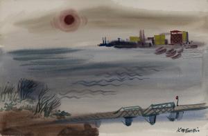 Skip to main content Collections MenuExpandMy CollectionView PDF[Harbor scene]PreviousNext 300 x 300 (Download)[Harbor scene]Artist Dong Kingman (Chinese American, 1911 - 2000)Date1938CultureChinese American ClassificationsPaintingMediumWatercolorDimensions15 x 22 3/4 in.Credit LineGift of the artistObject number1966.408 Discover More Image Not Available for [Unfinished sketch, boats in harbor][Unfinished sketch, boats in harbor]Dong Kingman1948[Unfinished sketch of tugboats in a harbor]Dong Kingman20th century[City street scene with traffic light]Dong Kingman1942[Marsh scene with flying birds]Dong Kingman1940[Factory scene]Dong Kingman1944[Solar aircraft company scene]Dong Kingman20th century[Farm scene with palm trees]Dong Kingman1950[Town scene with train]Dong Kingman1957[Construction scene]Dong Kingman1940Solar Aircraft Company Factory SceneDong Kingman1944Factory SceneDong Kingman1944[Dock scene]Dong Kingman1944 Powered by eMuseum