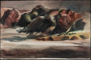 [mountain landscape in green and red]