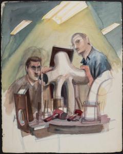 [Unfinished sketch, two male sculptors]