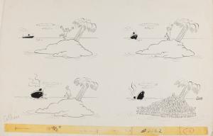 No caption - Man on deserted island, joined by passengers of sunken ship.