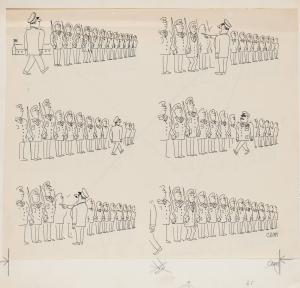 No caption - army officer inspecting troop, soldier crouching; 6 images.