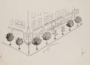 No caption - dead trees in front of garden supply store