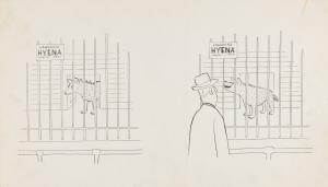 No caption - man and laughing hyena
