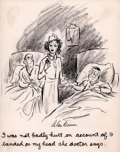 “I was not badly hurt on account of I landed on my head the doctor says.”