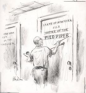 No caption ("Office of the Pied Piper" sign being painted on door)