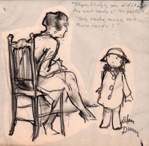 "I hope, Gladys, you didn't eat too much candy at the party.", "Holy smoke, Mamma, was there candy?"