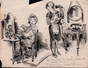 "Mrs. Reginald Vanderpoise wishes to speak with you.", "Oh, dear me, Annie. You'd better hand me my French phone."