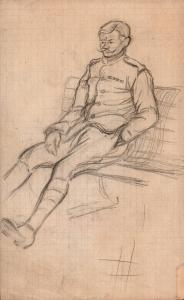 Ellis Island (uniformed figure seated on bench)