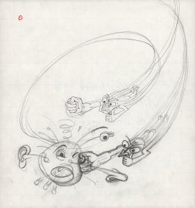 Untitled, figure in motion punching head
