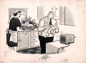 Skip to main content Collections MenuExpandMy CollectionView PDFThat Plate is Dry Enough!PreviousNext 300 x 300 (Download)That Plate is Dry Enough!Artist Don Tobin (American, 1916 - 1995)Dateno dateClassificationsCartoonMediumInk wash and inkDimensions7 3/16 × 10 1/4 in. Credit LineTransfer, Syracuse University Libraries Keyword/SubjectdomesticlaborhumorObject number1989.043 Discover More You go ahead, dear. I'll stay here and study this one.Don Tobinn.d.I'm sorry folks, these seats are saved.Don Tobinn.d.Boy! Carry Mr. Brown and his groceries out to his carDon Tobinn.d.George, the most wonderful thing happened today! We got a $130 refund on our income tax!Don Tobinn.d.It's nothing to me what your little boy did with your ticket.Don Tobinno dateYes, dear, you look fine... No, dear, your slip doesn't show.Don Tobinno dateHello, Mother-We Were Just Talking About You.Don Tobinno dateI don't care if he is your rich uncle I think we're going to too much trouble for his visit!Don Tobinno dateWhen I get married I'm going to have a simple wedding with hamburgers;Don Tobinno dateIt says here that in fifty years all this drudgery will be done for us by atomic energy.Don Tobinno dateI'm afraid you're sitting in his favorite chair, Mabel.Don Tobinn.d.Smells good- what is it?Don Tobinn.d. Powered by eMuseum