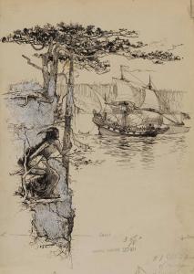[Indian watching a ship from shore]