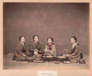 Skip to main content Collections MenuExpandMy CollectionView PDFEating at HomePreviousNext 300 x 300 (Download)Eating at HomeDatecirca 1880CultureJapaneseClassificationsPhotographMediumHand-tinted albumen printDimensions 8 1/8 × 10 3/8 in.Credit LineGift of Dr. Henry ’51 and Mrs. Nancy Peikin RosinKeyword/SubjectgenredomesticwomenObject number1992.345CopyrightPublic domain Discover More Seated girl playing an instrumentcirca 1880[Three women eating noodles]Freitag1890CookingRaimund von Stillfriedcirca 1880Japanese Funeralcirca 1880Eating Ricecirca 1880Four womenRaimund von Stillfried19th centuryWomen CookingRaimund von Stillfriedcirca 1880CookingRaimund von Stillfriedcirca 1880Kohbar Monologues #2Mahalaxmi2016 Image Not Available for [Chilamchi][Chilamchi]20th centuryVerve No. 3, Volume 1Marc ChagallOctober - December, 1938(159) untitled [sketch, bird eating; verso, sketches]Boris Artzybasheffno date Powered by eMuseum