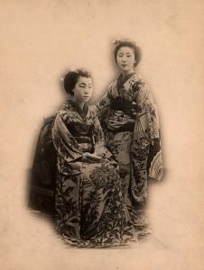 Skip to main content Collections MenuExpandMy CollectionView PDFTwo ladiesPreviousNext 300 x 300 (Download)Two ladiesDatec 1880ClassificationsPhotographMediumalbumen printDimensionsObject: 9 1/2 × 7 11/16 in. (24.2 × 19.6 cm) Sheet: 9 1/2 × 7 11/16 in. (24.2 × 19.6 cm)Credit LineGift of Dr. Henry ’51 and Mrs. Nancy Peikin RosinKeyword/SubjectwomanfigureObject number1992.669 Discover More Two womencirca 1880[Two women bowing]Freitag1890[Two women bowing on a mat]Freitag1890[Two women bowing at doorway]Freitag1890Two women on a porchFreitag1890[Portrait of two young women]Freitag1890"""A Bevy of Beauty"" Prostitutes"c 1880Jinrikisha Carrying Two Japanese Ladiescirca 1890Two Ladies Choosing Material at Fabric Shopc 1890Field Marshall Marquis Oyama and Family1905Floral doll sceneUeno Hikomac 1880Ladies Picnicc 1880 Powered by eMuseum
