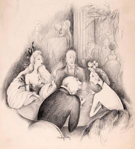 No caption (Four figures seated at a table)