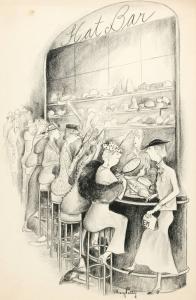 "Crowd of women at the "Hat Bar"."