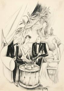 No caption (Four seated figures with waiter)