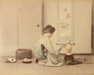 [Woman arranging flowers]