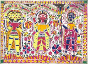 Skip to main content Collections MenuExpandMy CollectionView PDF[Brahma, Vishnu, and Siva]PreviousNext 300 x 300 (Download)[Brahma, Vishnu, and Siva]Datecirca 1975CultureIndian, MithilaGeographyBihar, IndiaClassificationsPaintingMediumWatercolor and inkDimensions21 1/8 x 29 1/2 in.Credit LineGift of Professor H. Daniel SmithKeyword/SubjectreligiousHinduMithilaObject number1989.106 Discover More Image Not Available for [Image of the Trinity, Brahma, Vishnu and Shiva][Image of the Trinity, Brahma, Vishnu and Shiva]20th centurySiva Mahayogin Seated Cross-leggedPoonam Kumaricirca 1975Siva on NandiChandrkala Devicirca 1975[Siva Mahayogin seated cross-legged on tiger skin]circa 1975[Siva Mahayogin seated cross-legged on tiger skin]circa 1975[Siva's sons Ganesh and Kartikeya]circa 1975Vishnu Adisesha with LakshmiChandrkala Devicirca 1975[Kurma and Matsya Avatars of Vishnu]circa 1975 Image Not Available for [Vishnu seated astride Garuda][Vishnu seated astride Garuda]20th century Image Not Available for Dancing VishnuDancing Vishnu20th century Image Not Available for Round velvet and sateen pillow with emblem of Vishnu conchRound velvet and sateen pillow with emblem of Vishnu conch20th c Image Not Available for Round velvet and sateen pillow with emblem of Vishnu discusRound velvet and sateen pillow with emblem of Vishnu discus20th c Powered by eMuseum