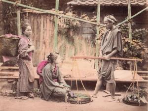 Two Women and a Man Carrying Vegatables