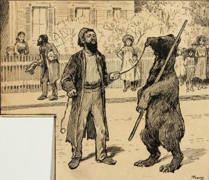 Man entertaining with captured bear
