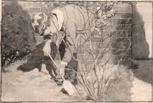 Boy with shovel planting tree