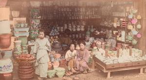 Skip to main content Collections MenuExpandMy CollectionView PDF[Children in a pottery shop]PreviousNext 300 x 300 (Download)[Children in a pottery shop]Datecirca 1880CultureJapaneseClassificationsPhotographMediumHand-tinted albumen printDimensions5 5/16 × 9 5/8 in. Credit LineGift of Dr. Henry ’51 and Mrs. Nancy Peikin RosinKeyword/SubjectpotterychildrenmerchantObject number1990.648 Discover More Pottery Shopcirca 1880Grocery and Fruit Shop19th centuryDry Goods Shop19th centuryFour people at kimono shopRaimund von Stillfried19th centuryShop in Fushimi near Kyotoc 1880Clothing Shopc 1880Fishmonger's Shopc 1880A Toy Shopc 1880Dry Goods Shopcirca 1880Orange shopKusakabe Kimbeicirca 1880[Child with a parasol stands outside a clothing shop in Yokohama]Kusakabe Kimbeicirca 1890Curio Shop, Japanc 1880 Powered by eMuseum