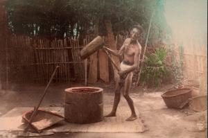 [Farmer pounding rice]