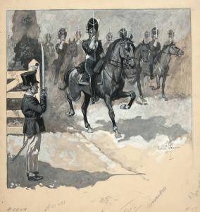Boy Soldier Saluting Soldiers on Horseback