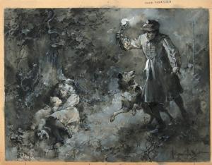 Man with Dog Discovering Little Girl Asleep in the Woods