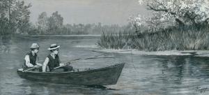Two Boys Fishing from Rowboat "Nelly"