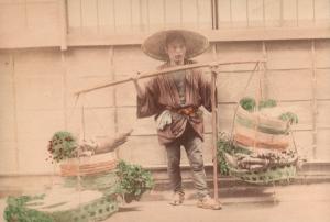 Skip to main content Collections MenuExpandMy CollectionView PDFVegetable SellerPreviousNext 300 x 300 (Download)Vegetable SellerDatecirca 1880CultureJapaneseClassificationsPhotographMediumHand-tinted albumen printDimensionsObject: 3 9/16 × 5 3/16 in. (9 × 13.2 cm)Credit LineGift of Dr. Henry ’51 and Mrs. Nancy Peikin RosinKeyword/SubjectworkerfigureJapanesemerchantObject number1991.251 Discover More Gojhozakacirca 1880Basket SellerRaimund von Stillfriedcirca 1880Vegetable sellerc 1880Transplanting Ricecirca 1880[Vegetable Shop]circa 1880Flower sellerRaimund von Stillfriedc 1880[Woman chopping vegetables]Freitag1890Baling CottonAlfred R. Waud1871Tea House Garden at Tokyocirca 1880Piquenique Pres Kiulhiang1891Elsa & KeeKee, Buffalo, NYMilton Rogovin1972, 1984, 1992, 2002Wedding ProcessionDulari Devi2014 Powered by eMuseum