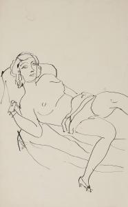 Skip to main content Collections MenuExpandMy CollectionView PDF[Reclining nude woman]PreviousNext 300 x 300 (Download)[Reclining nude woman]Artist Walt Kuhn (American, 1877 - 1949)Date1928ClassificationsDrawingMediumInkDimensionsObject: 10 5/8 × 9 5/8 in. (27 × 24.5 cm)Credit LineGift of Linda and Stephen L. SingerObject number1995.0826 Discover More [Reclining nude woman]Walt Kuhnno date[Reclining nude woman with left hand on hip]Walt Kuhnno date[Reclining nude woman with her head turned away]Walt Kuhnno date[Reclining nude woman with head resting on hand]Walt Kuhn1930[Reclining nude woman with knees bent and arm behind head]Walt Kuhnno date[Reclining nude woman with right arm behind head]Walt Kuhnno date[Reclining nude woman with legs draped over arm of couch]Walt Kuhnno date[Reclining nude woman]Walt Kuhnno date[Nude woman reclining on her right side]Walt Kuhnno date[Nude figure reclining on right hip with left arm covering face]Walt Kuhnno date[Two reclining nude women]Walt Kuhnno date[Reclining nude figure looking toward their left]Walt Kuhnno date Powered by eMuseum