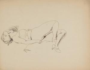 [Reclining nude woman with her head turned away]