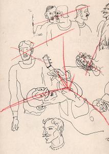 [Head and torso studies, one playing a small stringed instrument]