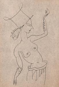 [Study of topless female circus performer with hat]