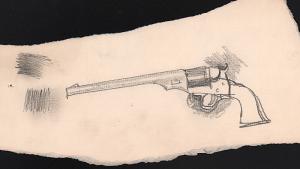 Skip to main content Collections MenuExpandMy CollectionView PDF[Six-shooter pistol]PreviousNext 300 x 300 (Download)[Six-shooter pistol]Artist Walt Kuhn (American, 1877 - 1949)Dateno dateClassificationsDrawingMediumPencilDimensionsObject: 5 1/4 × 11 in. (13.4 × 28 cm)Credit LineGift of Linda and Stephen L. SingerObject number1995.1090 Discover More [Six-shooter pistol and flower]Walt Kuhnno date[Six men with cowboy hats]Walt Kuhn1933[Two standing men, one with a shovel]Walt Kuhnno dateThe Prairie FlowerWalt Kuhnno date[Study of three men wearing hats]Walt Kuhnno dateGirl with CigarettesWalt Kuhn1929Girl AsleepWalt Kuhn1928Young PerformerWalt Kuhn1928Girl with RoseWalt Kuhn1928Blond in Evening DressWalt Kuhn1928Blond OutstretchedWalt Kuhn1928Girl with Hand Resting on CheekWalt Kuhn1929 Powered by eMuseum