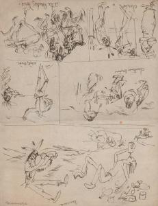 [Five ink drawings: Massacre, Christmas Dinner, A Dirty Trick, Rain Flower, At The Rendezvous]