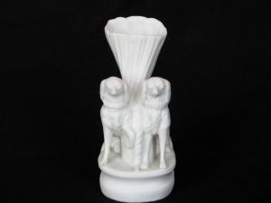 [Shell-shaped Parian vase with two dog ornaments]