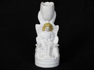 [Tulip flower parian vase with reading child and reclining sheep ornament]