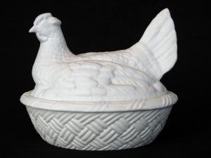[Parian hen-in-basket covered dish]