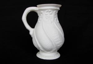 [Pear-shaped parian pitcher with segmented handle and interior glaze]