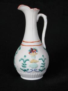 [Pear-shaped parian ewer with colored fruit basket design]