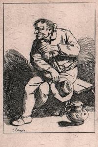 - Sitting man with his hat in his right hand