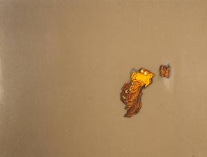 L19. Goofy in green garb with green hat with purple feather, holds a broken stick above his head (4)