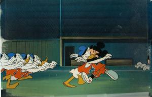 L52. Donald and Mickey stretch their limbs, both in basketball garb (9)